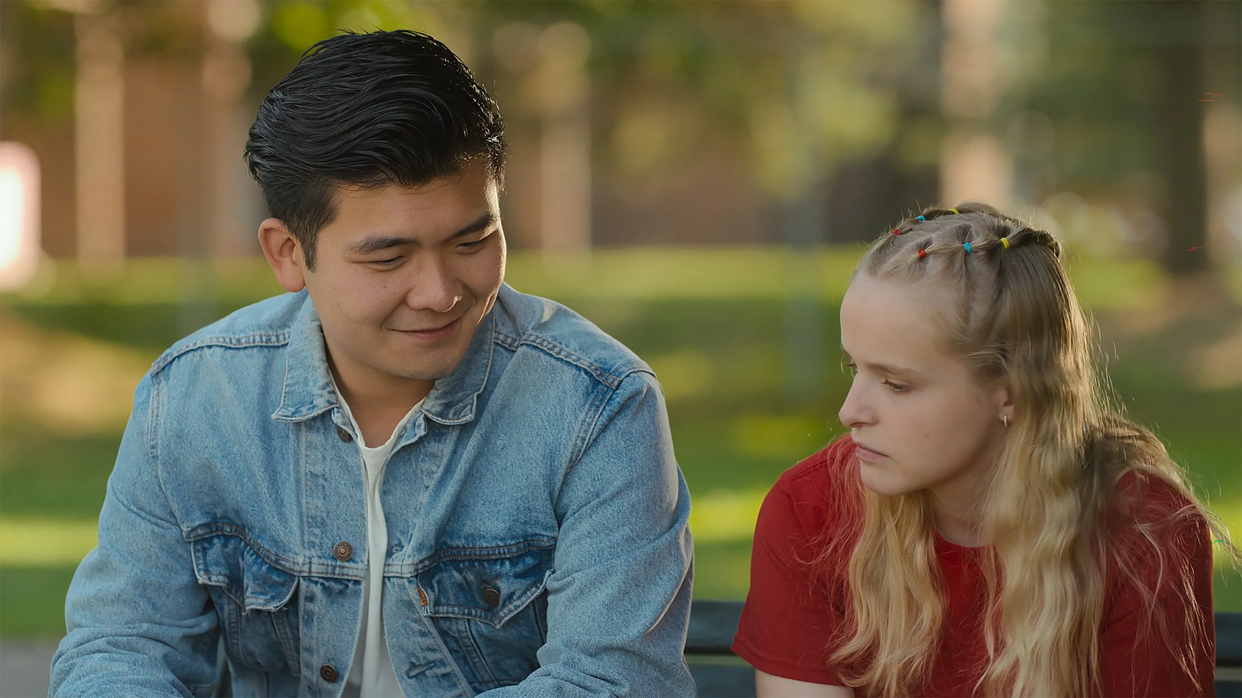 Magnetosphere’s name comes from the nickname Maggie is given by her crush, an actor in her father’s community theater musical production. Her crush, Travis (Steven He), is twice her age and sees her as a sweet kid sister. To Maggie, it’s an enduring love. This is not the kind of movie where Maggie’s crush is reciprocated, nor should it be. Magnetosphere instead uses this relationship as a way for Maggie to realize that life exists in many forms. That a friendship can endure even if romantic feelings aren’t reciprocated. It’s a lesson she uses in another friendship in her life. Magnetosphere captures the sickly sweet, often soul-crushing feeling that comes with developing your first love.