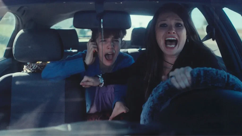 The dynamic between sisters is quite difficult to capture. They have to be at each other’s throats one second and sharing makeup the next. BRB’s script, from writers Michael Waller and Sydney Blackburn, lays a perfect foundation for the chemistry between Best and Colletti to sparkle. It’s an immediate buy-in from the viewer. The line, “Like you’d even care if I got sex trafficked, you basically hate me,” is hurled so confidently and casually from Best’s Sam that it succinctly underlines the dynamic at play here.